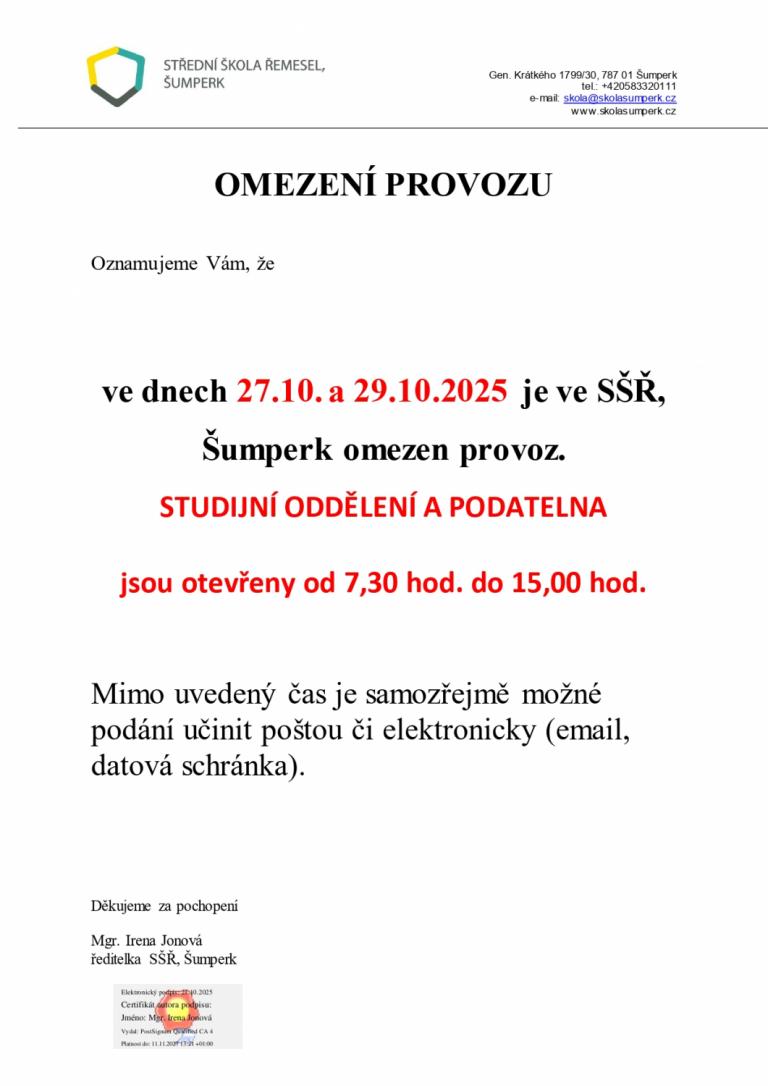 Omezení provozu