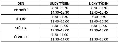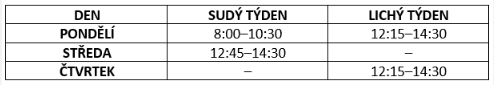 Konzultační hodiny v budově na ulici Gen. Krátkého 30, místnost č. 104